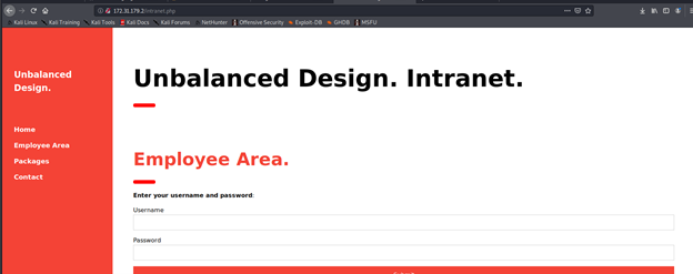 - Enumerating 172.31.179.(2/3) reveals the same page as intranet: