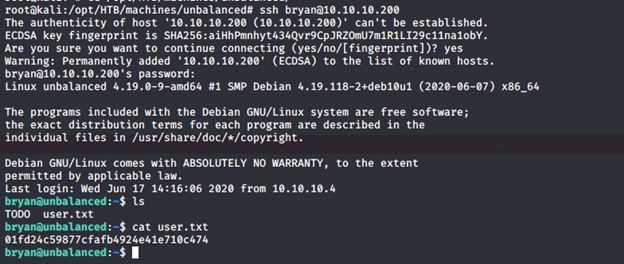 - The Unbalanced machine IP is 10.10.10.200.