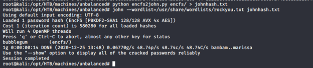 - And running the hash with John revealed the password for the encrypted files: