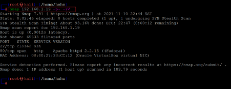 Command used: << nmap -p- -sV 192.168.1.19 >>