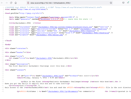 We get another note mentioning the root flag name 'key.txt' on the above web page. We checked the page's HTML source and found the WordPress version, which can be seen highlighted in the following screenshot.