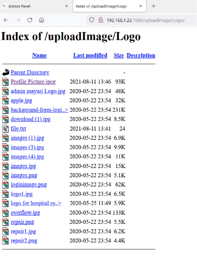 We right-clicked on the image file and copied the URL to open it into another tab. The uploaded image could be seen, and we also found that directory listing was enabled on the upload folder. This can be seen in the screenshot that follows.