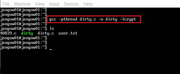 Command Used: << gcc -pthread dirty.c -o dirty -lcrypt >>