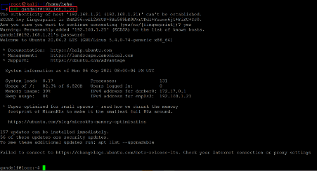 Command used: << ssh gandalf@192.168.1.21 >>