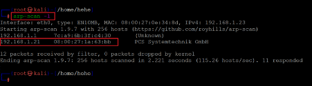 - Getting the target machine IP address by running the ARP scan