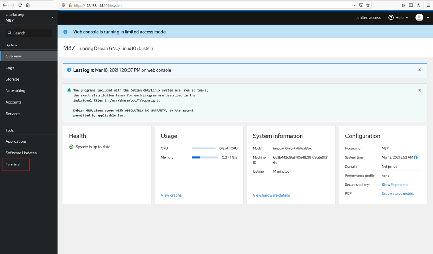 This login page is used to log in to the target machine server. We found a terminal functionality that could be run through the browser.