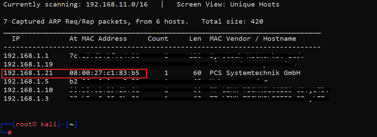 Command used: << netdiscover >>