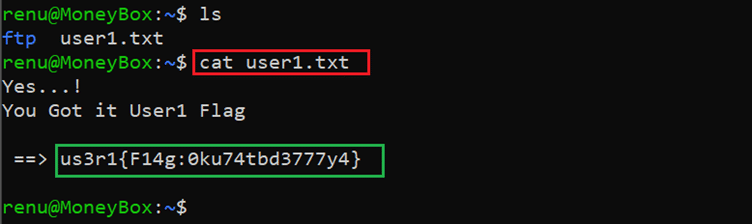 Command used: << cat user1.txt >>