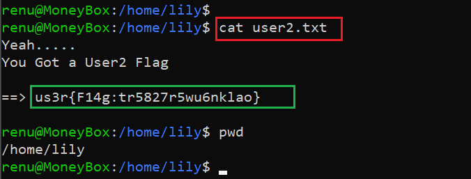 Command used: << cat /home/lily/user2.txt >>