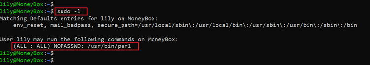 Command used: << sudo -l >>
