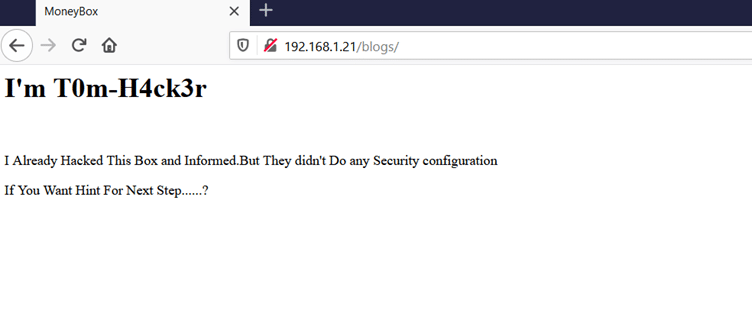 MoneyBox 1: VulnHub CTF walkthrough