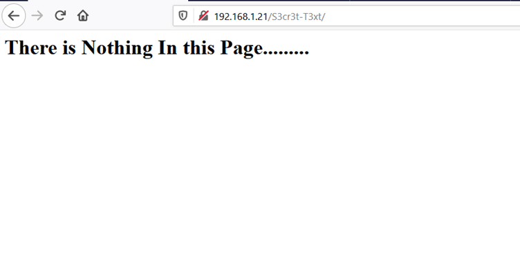 Command used: << dirb http://192.168.1.21/S3cr3t-T3xt/ >>
