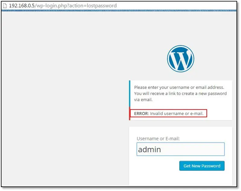 Now we have a login page and a dictionary to brute force. We start from the user enumeration on the forgot password page for identifying the correct user. We tried the admin user, but it throws the error message that Invalid username or e-mail.