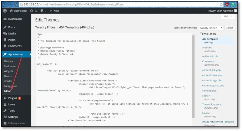 After poking around the functionalities of the admin, we found the Editor option which allows the user to edit the source code of the template file.