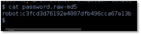 Once we had the system access we start browsing all directories in home/robot/ we found our 2nd token, but we couldn't read that file.