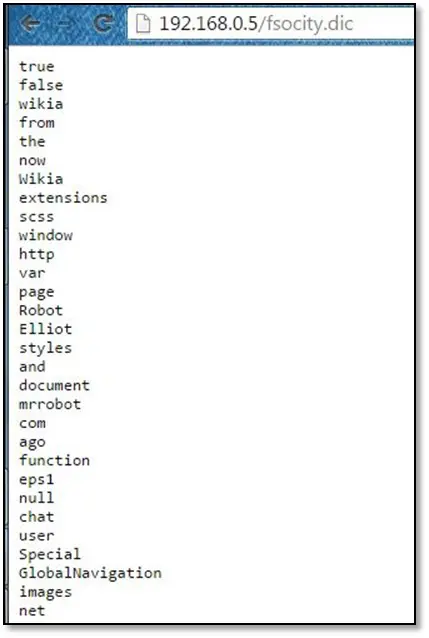 After that, we opened the fsocity.dic which is a dictionary file contains more than eight lacs wordlist.