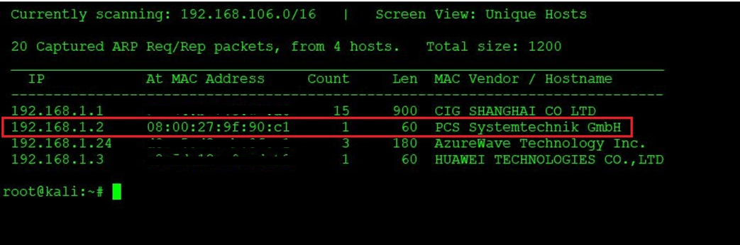In the highlighted area above, we can see the target machine IP address. The target machine IP address is 192.168.1.2 and my Kali machine IP address is 192.168.1.54. We will be using 192.168.1.54 as the attacker machine IP address.