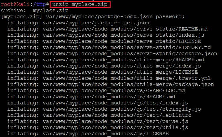 - unzip myplace.zip (This command is used to extract the zip files)