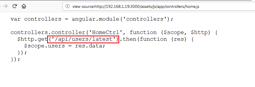 In the above screenshot, we can see an internal URL in the “home.js” file. Let’s open this URL in the browser.