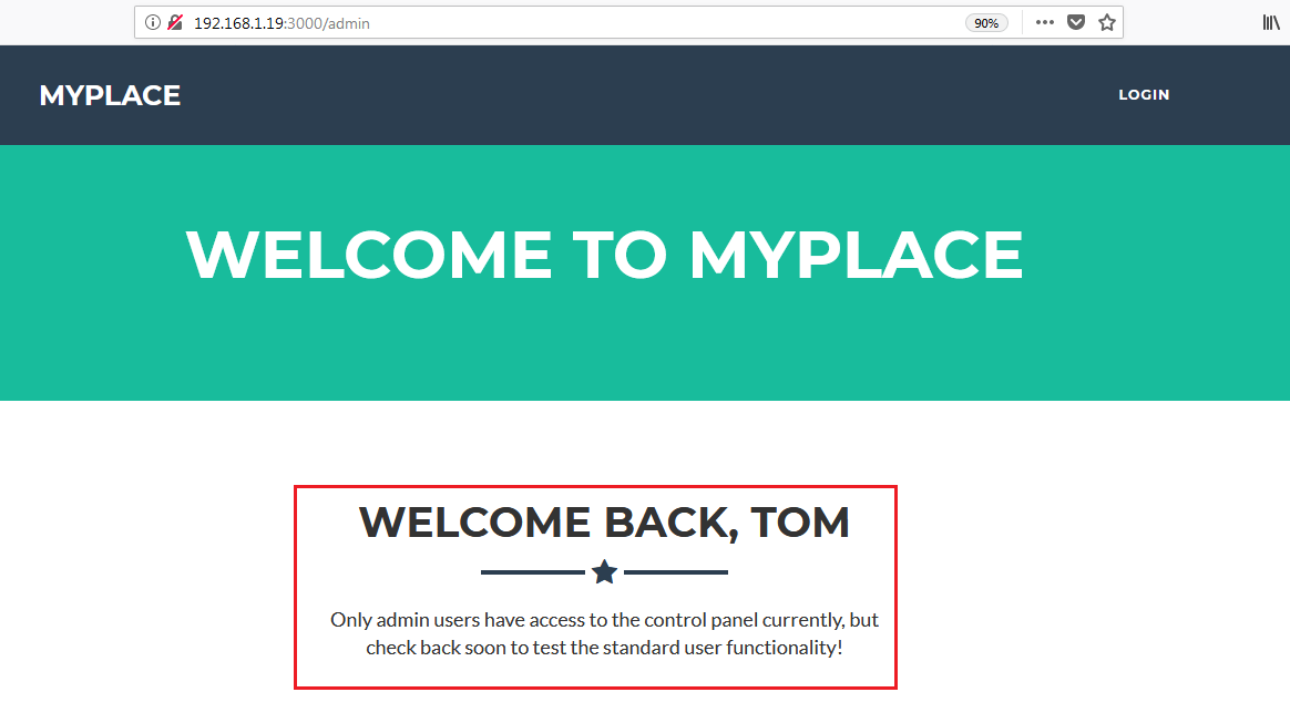 As you can see, we have successfully logged into the application as Tom, but no functionality is available for this user. However, there is a message which states that only admin users currently have access to the control panel. And as we already know that all the identified users do not belong to admin role, it’s clear that we need an admin account to access the full functionality.