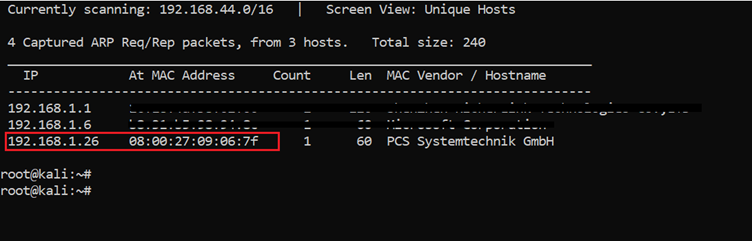 In the highlighted area of the above screenshot, we can see the target machine IP address. The target machine IP address is 192.168.1.26 and I will be using 192.168.1.27 as the attacker IP address.