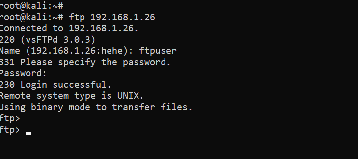 As we already know the username and password of FTP from the previous step, we logged into the target system by providing the details: