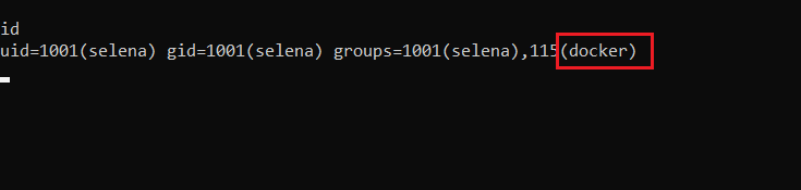 During the enumeration, we identified that Docker is being used on the target machine. We observe this in the id command output.