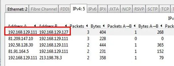 Analysis - Go to Statistics and select Conversations, and as can be seen below, there are 6 connections that have been initiated, and the second connection is between 81.209.147.10 and 192.168.129.111.
