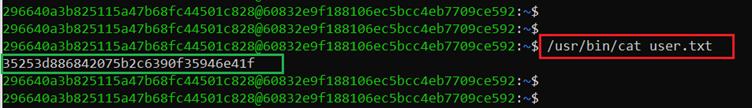 As we can see, the rbash restriction is removed and we are able to run any command. We started exploring various directories on the target machine and found a user flag in the user directory. The flag can be seen in the following screenshot.