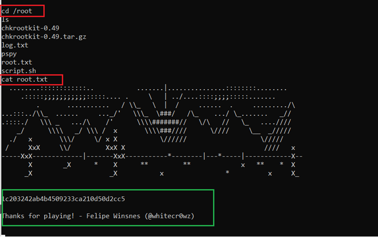As we can see in the highlighted area, we got a chkrootkit package and its version information. We quickly checked the local exploit for this version of this program and the first Google result shows an effective local privilege escalation exploit: