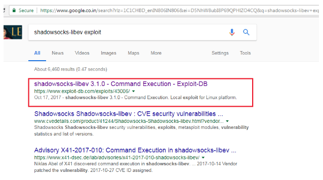 After getting some more details about this server from Github, I searched for an exploit for this service and the very first result on Google put a smile on my face! It was an Exploit-DB result which stated that the package is vulnerable for remote code execution. It can be seen in the following screenshot.