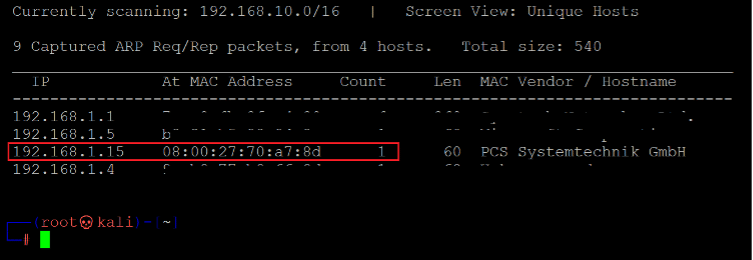 Command used: << netdiscover >>