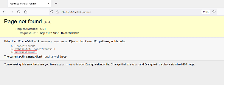 When we tried to access the admin section on the target application, the application responded with the above errors. As debugging was enabled, we found the detailed error information where we found a path to another folder on the target application. So, let's access the identified folder "mercuryfacts/" on the browser.