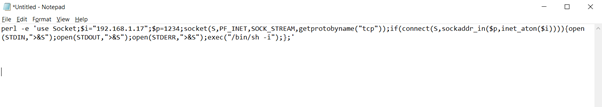 Perl can be used for taking the reverse connection, so let’s prepare our payload which we need to execute on the target machine.