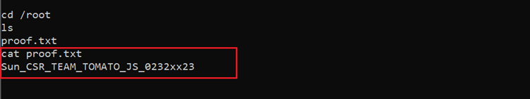 As we have the root access of the target machine, the last step is to read the flag file. The flag file was named ‘proof.txt’ and was situated in the root folder.