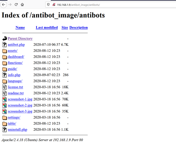 In the above scan results, we found one directory where the directory listing was enabled. Let's open it in the browser.