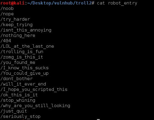 Troll2 is not that easy. It gave a message TRY HARDER LOL! Moreover, closed the session.