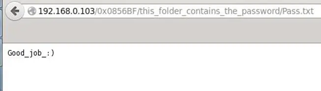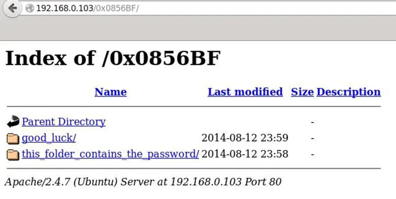 We opened the address in the browser and that was a directory with two directories: good_luck and this_folder_contains_the _password.