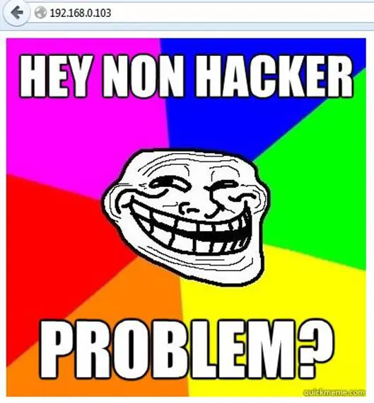 So we started from the HTTP service. We opened up the target address in the browser and what did we see? A troll image.