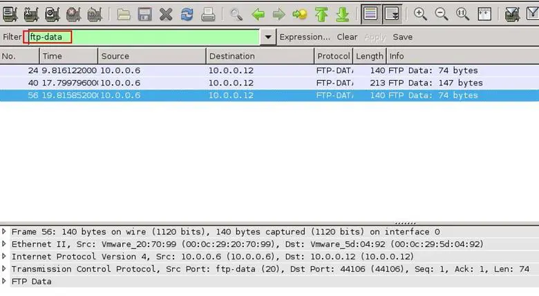 File transfer has been done, meaning it was on FTP protocol, so we applied a filter by using ftp-data for filtering all connections. As can be seen below, we found only three connections.