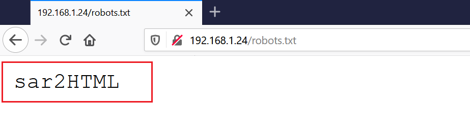 So, we can see that there is an uncommon entry in the robots.txt file. It is a text string “sar2HTML”. Out of curiosity, I decided to run this on the browser and found that it was a good decision. The output can be seen in the following screenshot: