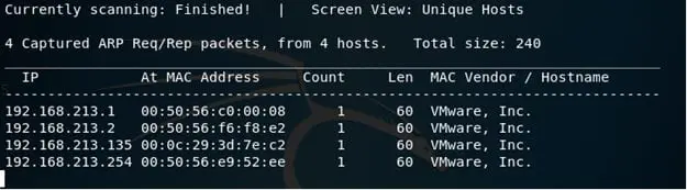 - Let's start with enumeration. First, we need to identify the IP of this machine. Let's use netdiscover to identify it. Below, we can see netdiscover in action. The IP of the victim machine is 192.168.213.135.