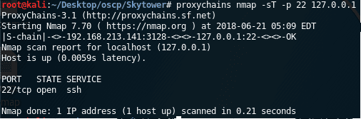 <<proxychains nmap -sT -p 22 127.0.0.1>>